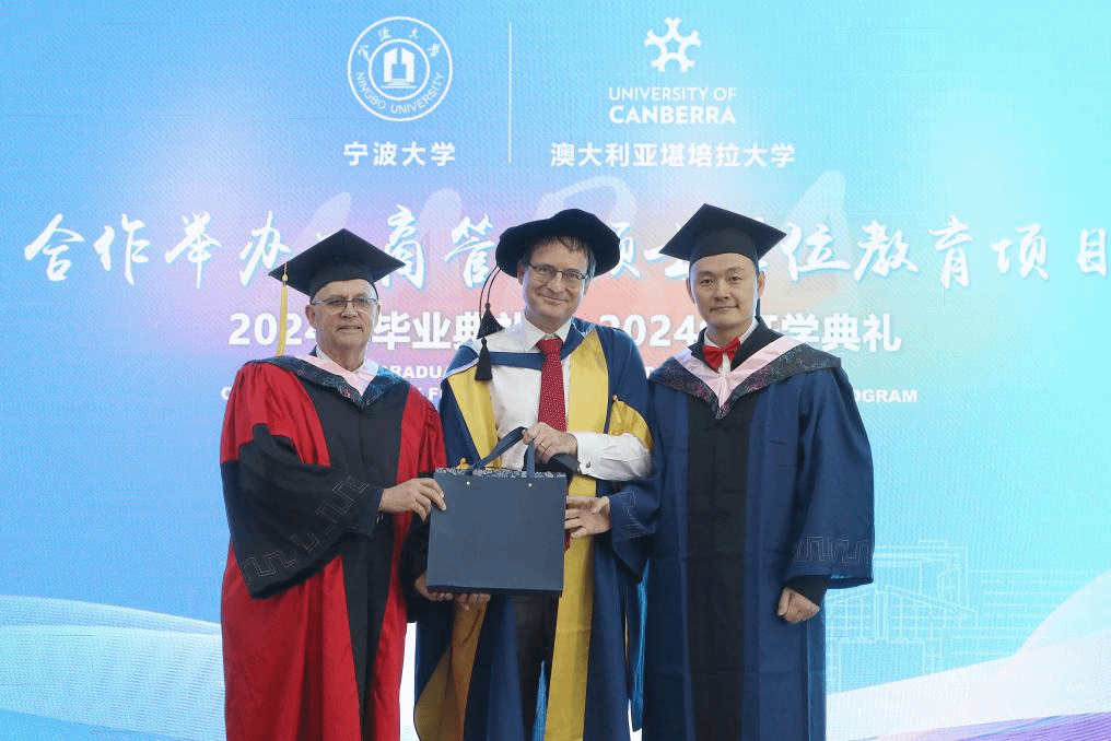 随后,由院党委书记史宏协宣读2024届毕业生名单。金祥荣院长与Uwe Dulleck院长一起为毕业生颁发了澳大利亚堪培拉大学的工商管理硕士学位证书和h图书馆 学习经历证明。