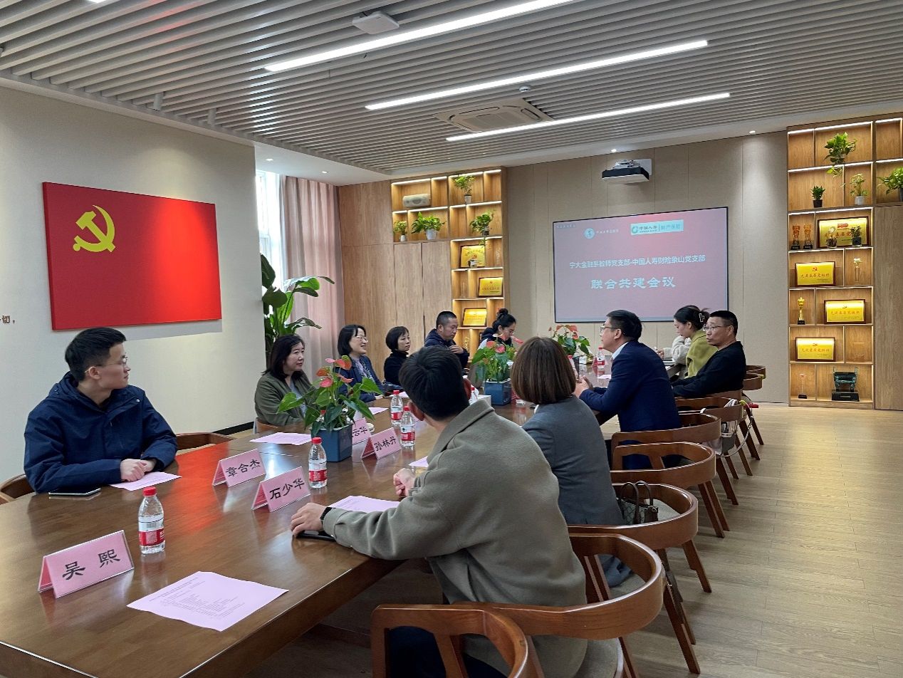会上,金融系教师党支部书记邱波首先介绍了金融系教师党支部的基本情况、支部在“三会一课”、主题党日活动中的基本做法和创新思考。随后,王小雨介绍中国人寿财险象山党支部的情况,分享了他们与象山县医保局党支部、象山县第一医院、中医院等单位开展党建共建工作中的成功经验和做法。座谈交流环节,双方就乡村振兴和助学扶贫等方面进行了深入交流。双方在今后党建共建的活动宗旨、主题选择、具体形式等诸多方面都形成广泛共识。