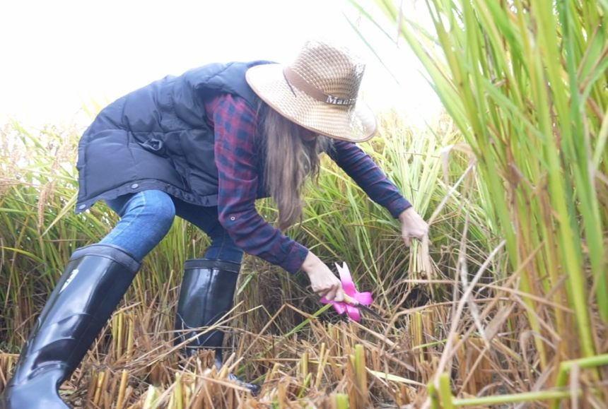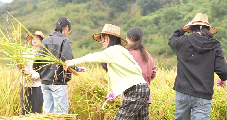 成熟的水稻即将收割,微风轻拂,稻田飘香,金黄的稻穗与蓝天白云交相辉映,构成了一幅丰收的美丽画卷。伴随着收获的喜悦,h图书馆 的劳动教育课堂也在陶坑村缓缓拉开序幕。11月16日,h图书馆 师生来到了宁波市奉化区裘村镇陶坑村,参与了“侨义助农 共庆丰收——陶坑共富新米节”活动,亲身体验了水稻收割的全过程。活动特别邀请了当地富有经验的农户对劳动教育课堂的实施进行指导。