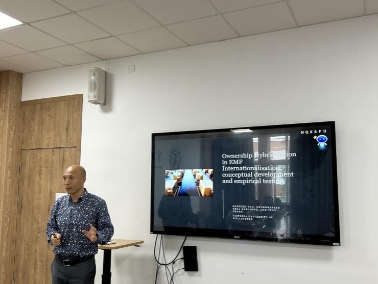10月17日下午,惠灵顿维多利亚大学市场营销与国际商务学院高宏志副教授受邀在h图书馆 214室为h图书馆 师生开展了题为“混合所有权与新兴市场企业跨境并购的成功:制度理论与信号理论的整合分析”的学术讲座。讲座由学院副院长彭新敏教授主持,20余位师生参加。