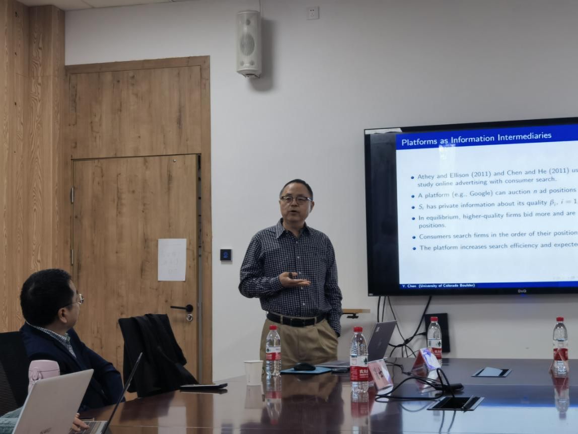 讲座开始前,罗德明教授对陈勇民教授的到来表示热烈的欢迎和感谢。陈勇民教授讲座内容主要围绕“A random-quality approach”、“Platforms as information intermediaries”、“Entry and welfare under search frictions”、“quality observability and search”和“Perspective on IO theory and the digital economy”展开,并结合谷歌的案例,阐述了这些内容。