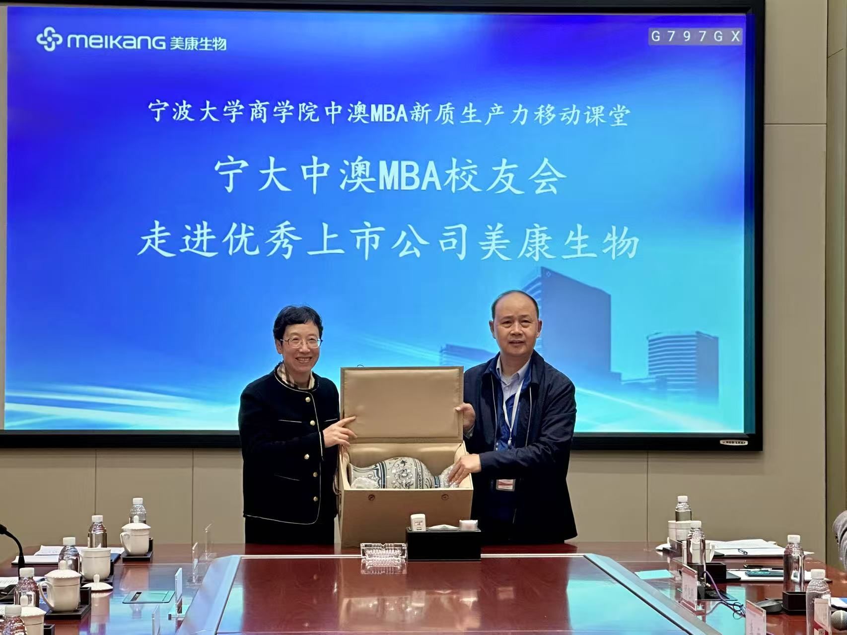 交流结束后,彭新敏副院长代表h图书馆 ,邱妘教授代表h图书馆 中澳MBA校友会分别向美康生物送上了精心准备的感谢礼品。全体参会人员在公司一楼大厅内进行了合影留念,为此次活动留下了珍贵的记忆。