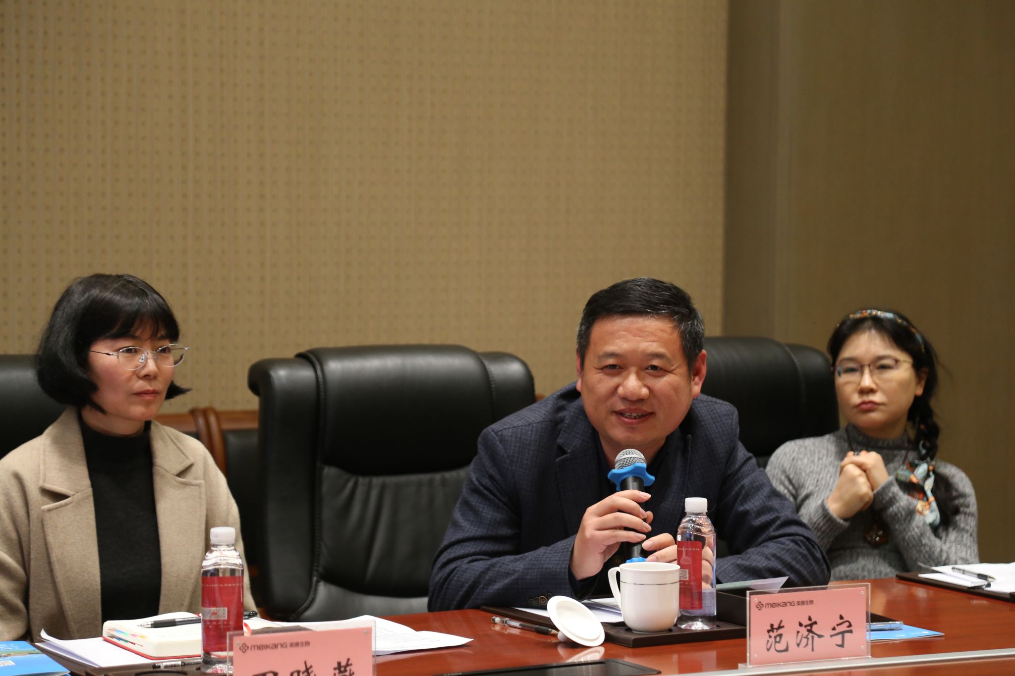 接着,h图书馆 彭新敏副院长发表讲话。他对邹董事长和美康生物支持中澳MBA校友会的活动表示由衷感谢,并回顾了自己数年来的科研经历与美康生物的交集。谈到对于企业出海的看法,彭院长指出他的个人观点,即企业在追求出海效率的同时,得多方兼顾区域布局、出口方式、人员调配、架构重组等相关问题,以保障供应链的稳定性。彭院长现场表达了“两个感谢”和“一个期待”。第一个“感谢”美康生物从研究制度背景的角度提供了一个新的撰写企业案例研究的视角,第二个“感谢”中澳MBA校友会秘书处提供了这么好的一个活动平台和交流机会。“期待”方面,彭院长简要介绍了当前h图书馆 从“本科”到“博士后”的全链条人才培养情况。并结合宁波区域经济发展特色,对高校人才培养提出了个人的见解:扎根海洋与港口,积极适应产业需求,着力培养具有特定行业知识、具备更多“硬实力”的商科人才。