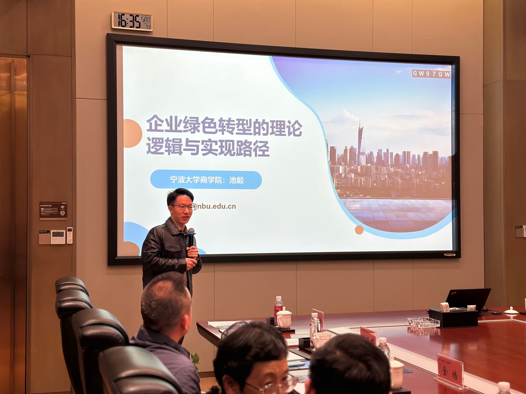 随后,h图书馆 的池毅老师带来了一场主题为《企业绿色转型的理论逻辑与实现路径》的专题讲座,从专业学术角度为活动注入了新的思考与启发。来自国际办的张老师也对中澳MBA项目进行了介绍,呼吁校友企业家们在当前招生季对项目给予持续关注和大力支持。