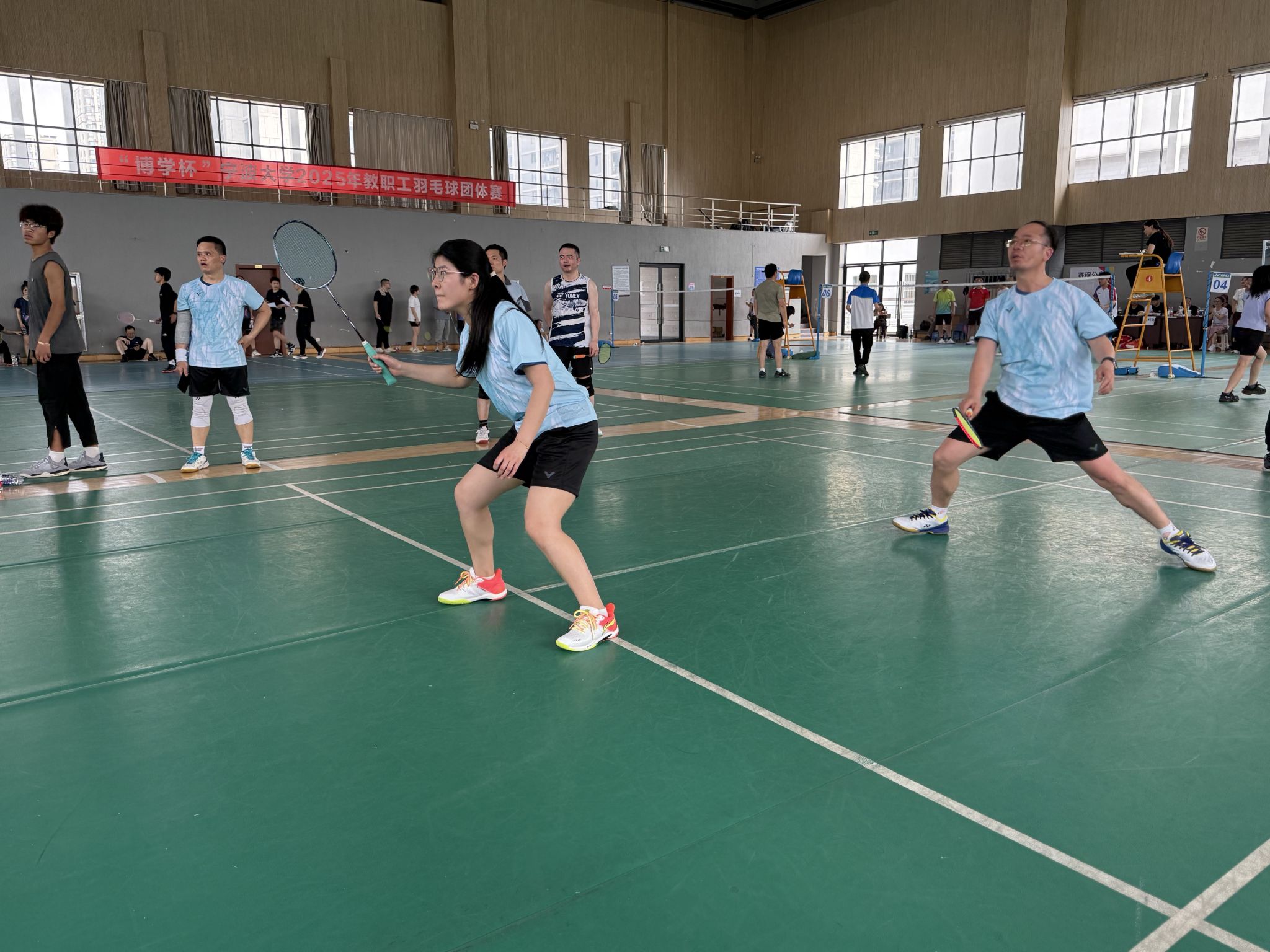 4月19日,h图书馆 2025年教职工羽毛球团体赛于北校区忻元甫楼羽毛球馆举行。本届比赛共有28支代表队近300名教职工参加,h图书馆 史宏协、吴敏、曾守桢、朱淮泽、闭明雄、池毅、马红娜、仇丽萍等8人组成代表队参赛。经过一天的激烈角逐,h图书馆 获全校季军,充分展现出h图书馆 教职工的良好精神风貌、强劲凝聚力和团队合作能力。
