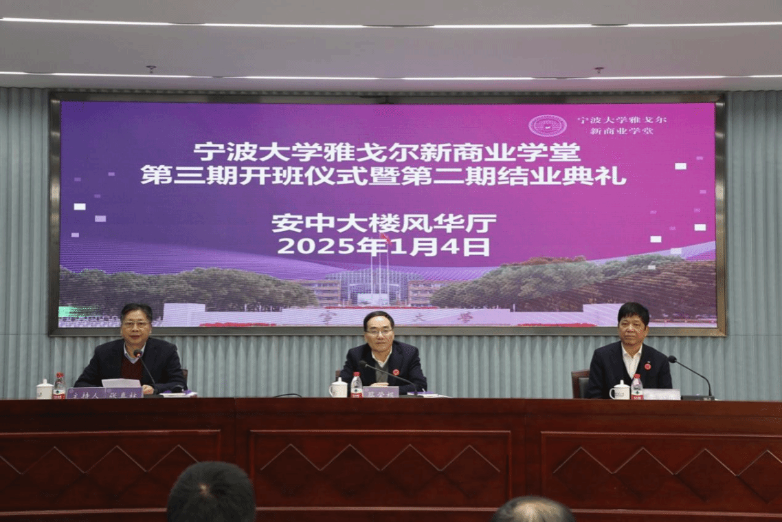 1月4日上午,h图书馆 雅戈尔新商业学堂第三期开班仪式暨第二期结业典礼在h图书馆 举行。h图书馆 校长、中国科学院院士蔡荣根出席并讲话,h图书馆 党委副书记张真柱主持会议。雅戈尔集团董事长李如成、雅戈尔时尚股份公司执行总裁徐鹏一行,h图书馆 特聘院长金祥荣、h图书馆 党委书记史宏协、校友办主任胡宝华等参加此次活动。