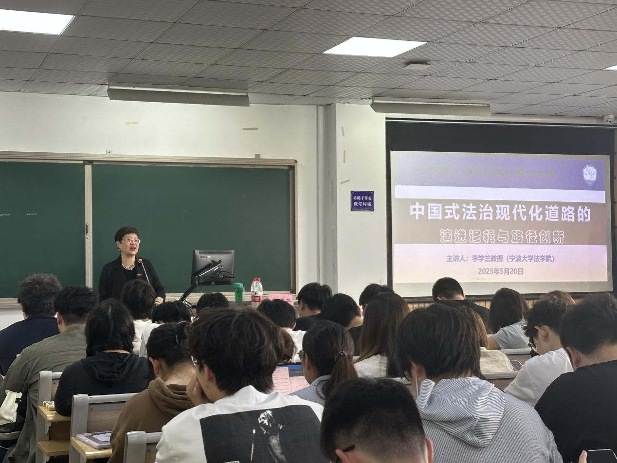 5月20日下午,法学院李学兰教授以“中国式法治现代化道路演进逻辑与路径创新”为题,为h图书馆 学生们讲授了一堂别开生面的“形势与政策课”。180名学生代表参加。