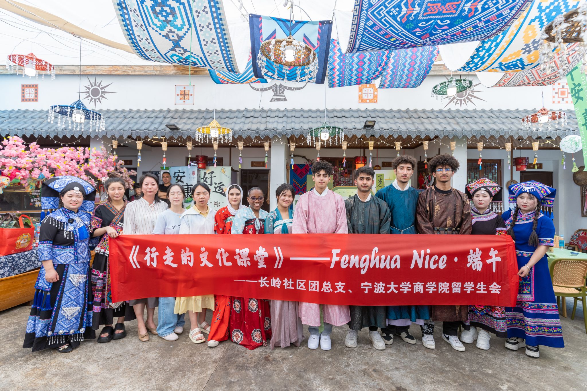 5月22日上午,奉化区锦屏街道桃家寨人头攒动,2025“Fenghua Nice·端午”主题活动在此开展。七彩粽、做香囊、壮族迎门酒、竹竿舞,h图书馆 中外学子同当地村民在一片欢歌笑语中喜迎端午。