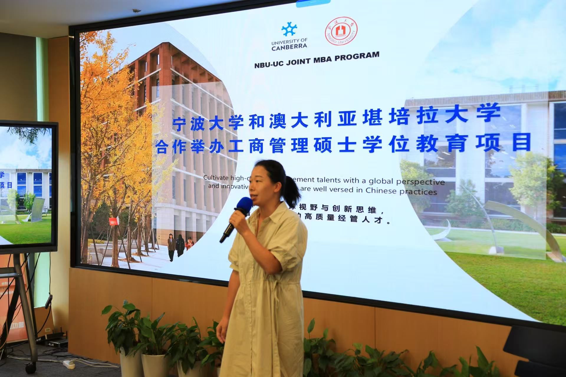 接着,h图书馆 张晓婳老师进行了中澳MBA项目介绍,并向在座校友汇报了项目的最新动态与招生进展。