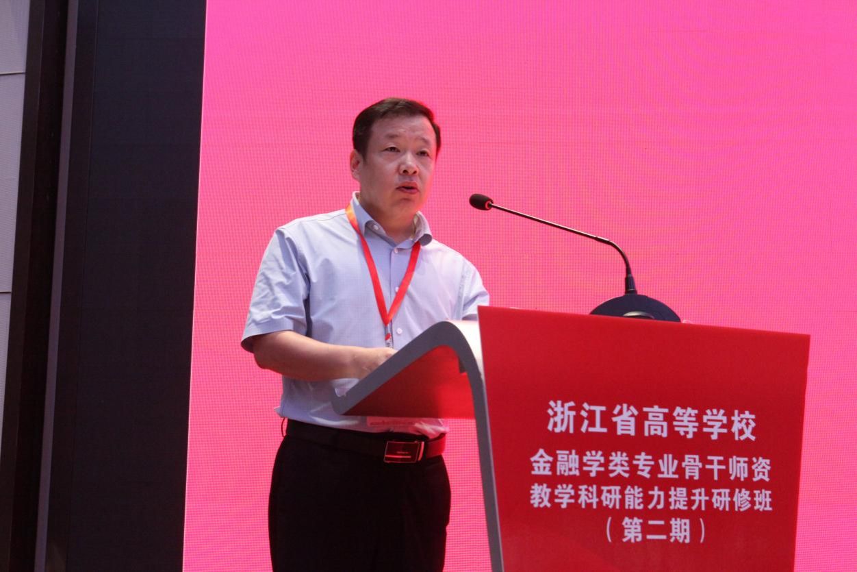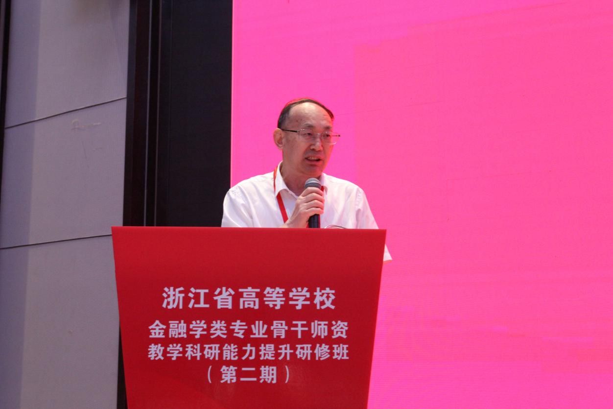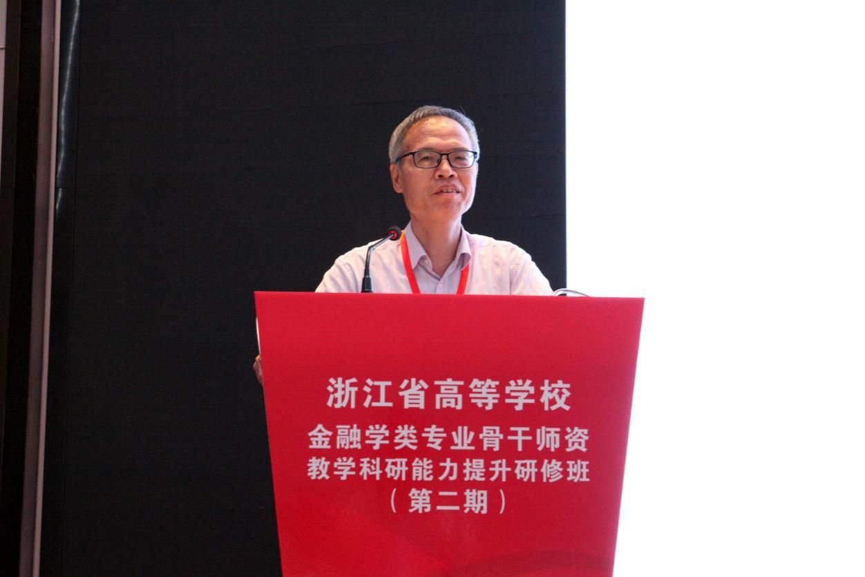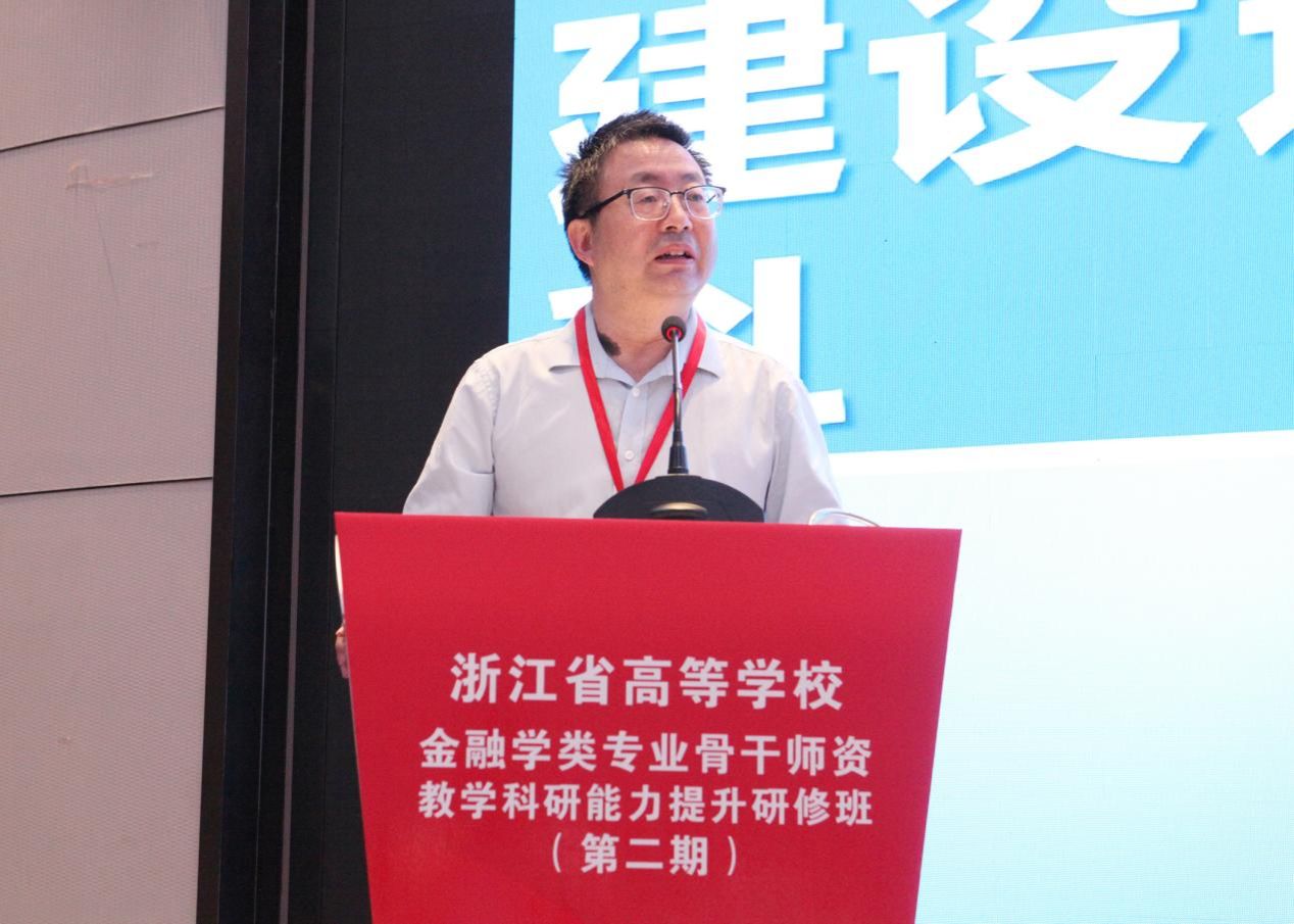 金雪军主任在致辞中回顾了首期研修会的良好成效,并表示在h图书馆 和各位专家学者的共同努力下,本次研修会必将再创佳绩。他指出,浙江作为经济和金融大省,对高素质金融人才需求迫切,高校金融教育责任重大。面对金融科技、绿色金融、数字经济等新趋势,我省金融教育仍需不断创新。他强调,教学指导委员会将持续推动课程更新、师资建设和产教融合,打造具有浙江特色、全国影响的标志性成果,为建设“金融强省”和“高教强省”贡献力量。