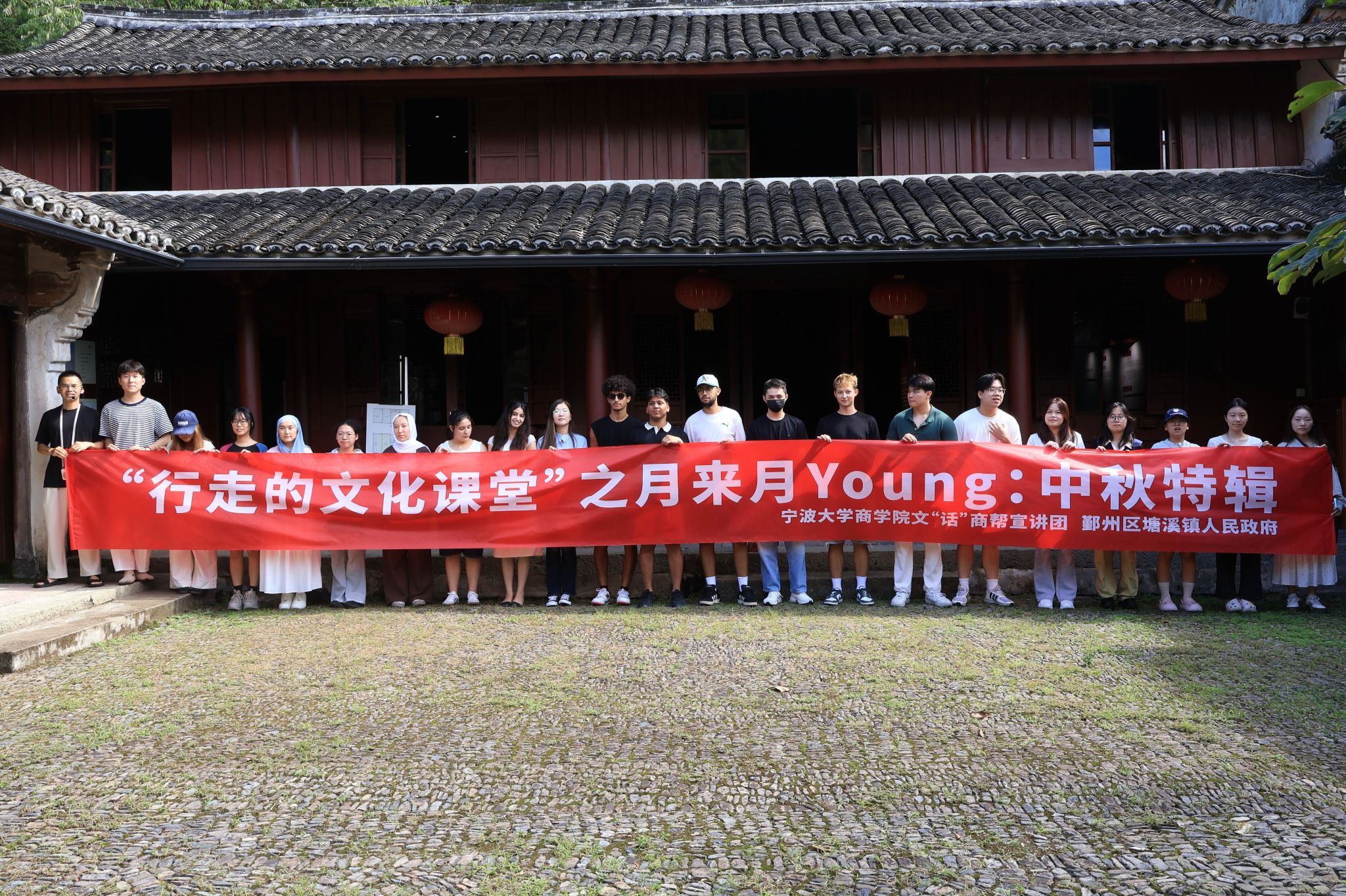 9月26日,h图书馆 文“话”商帮宣讲团联合鄞州区塘溪镇人民政府开展“行走的文化课堂”之中秋特辑活动,来自德国、乌兹别克斯坦、越南等国家的10余名h图书馆 留学生在当地民俗馆,和当地志愿者一起做冰皮月饼、扎灯笼,欢庆别样中秋佳节。