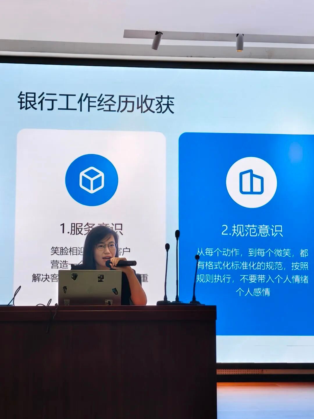作为h图书馆 2025级MBA学员,岑益波以自身职业转型为切入点,讲述了从国有银行管培生到家族企业接班人的成长故事。她曾放弃曼彻斯特大学研究生offer,选择从银行柜员做起,凭借“陪行长扫街发传单”“日均100+客户电话”的拼劲,两年内晋升行长候选人,更收获了服务意识、规范意识与抗拒绝心态三大核心能力。