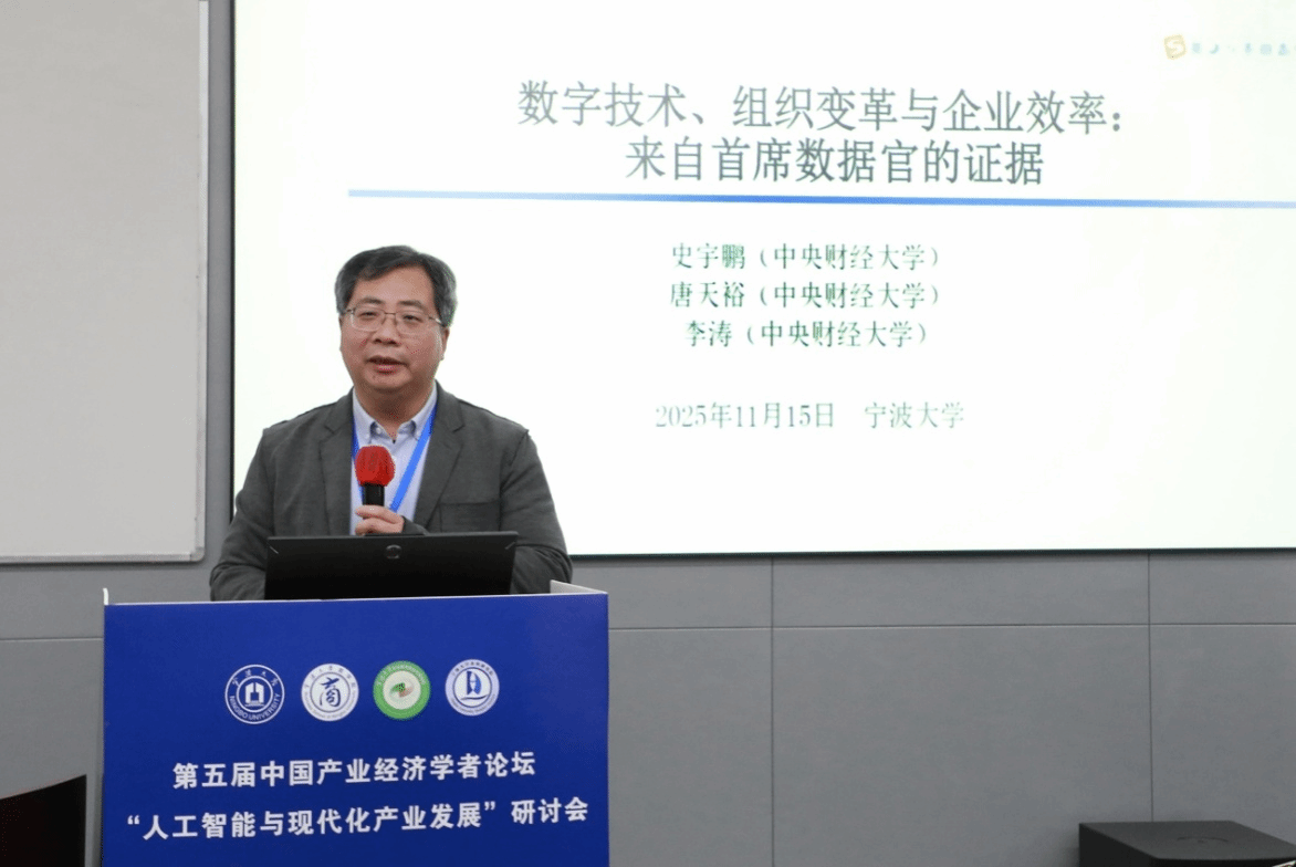中央财经大学“龙马学者”特聘教授、中国互联网经济研究院副院长史宇鹏以“数字技术、组织变革与企业效率”为题,阐述了数字技术与组织变革的互补关系。他指出,与以往信息技术不同,数字技术强调的是数据要素在组织内外能够进行充分的流通与整合,其作用发挥非常依赖于企业内部是否打破了“数据孤岛”、形成了数据要素的自由流动机制。研究以企业首席数据官(CDO)制度为切入点,实证检验了数字技术与组织变革的互补效应。结果表明,CDO的设立显著提升了已开展数字化企业的全要素生产率,这种互补效应在数据要素规模更大、类型更多、来源更分散的企业中更为突出,并且以CDO设立为代表的组织变革能够有效提升企业生产与研发环节的资源配置效率。