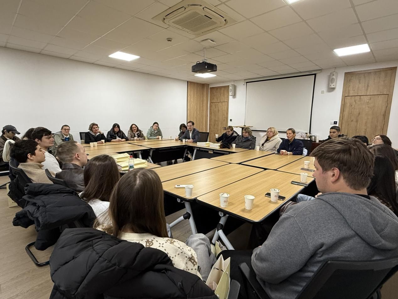 活动伊始,来自黑龙江大学的政治经济学在读博士生济亚京分享了自己在中国的求学经历,围绕课程适应、学术规范与语言提升等方面提供了实用建议。现场俄罗斯留学生围坐一堂,就学业进展、语言学习及生活适应等话题展开深入交流。大家积极分享课程学习心得与中文学习方法,并畅谈在饮食、社交、文化融入等方面的生活体验。