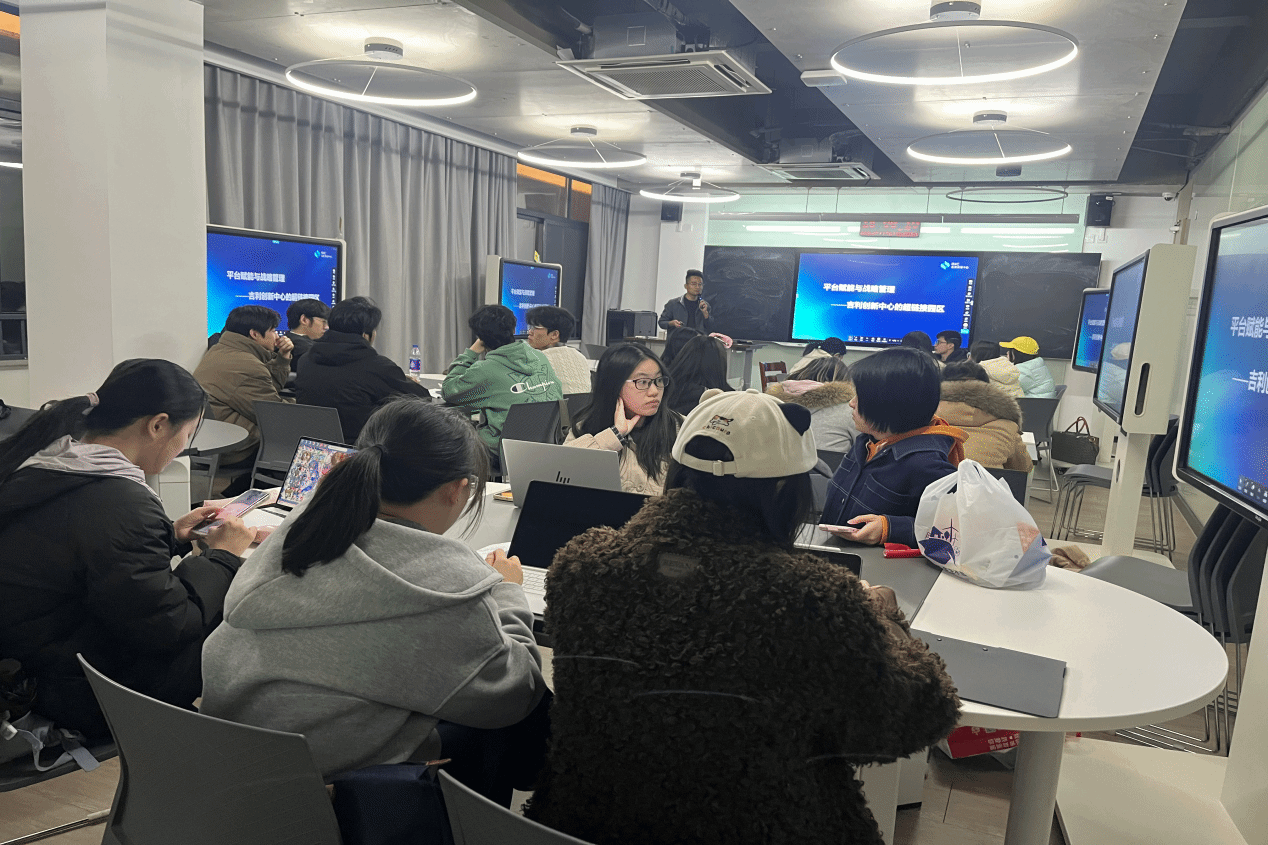 随后,李云炳先生详细介绍了浙江超链接科技发展有限公司的业务范畴、运营模式以及在吉利生态中的战略定位,让同学们了解到这家吉利全资子公司在“超链接”创新生态构建中的重要作用,为大家展现了企业生态化发展的生动案例。