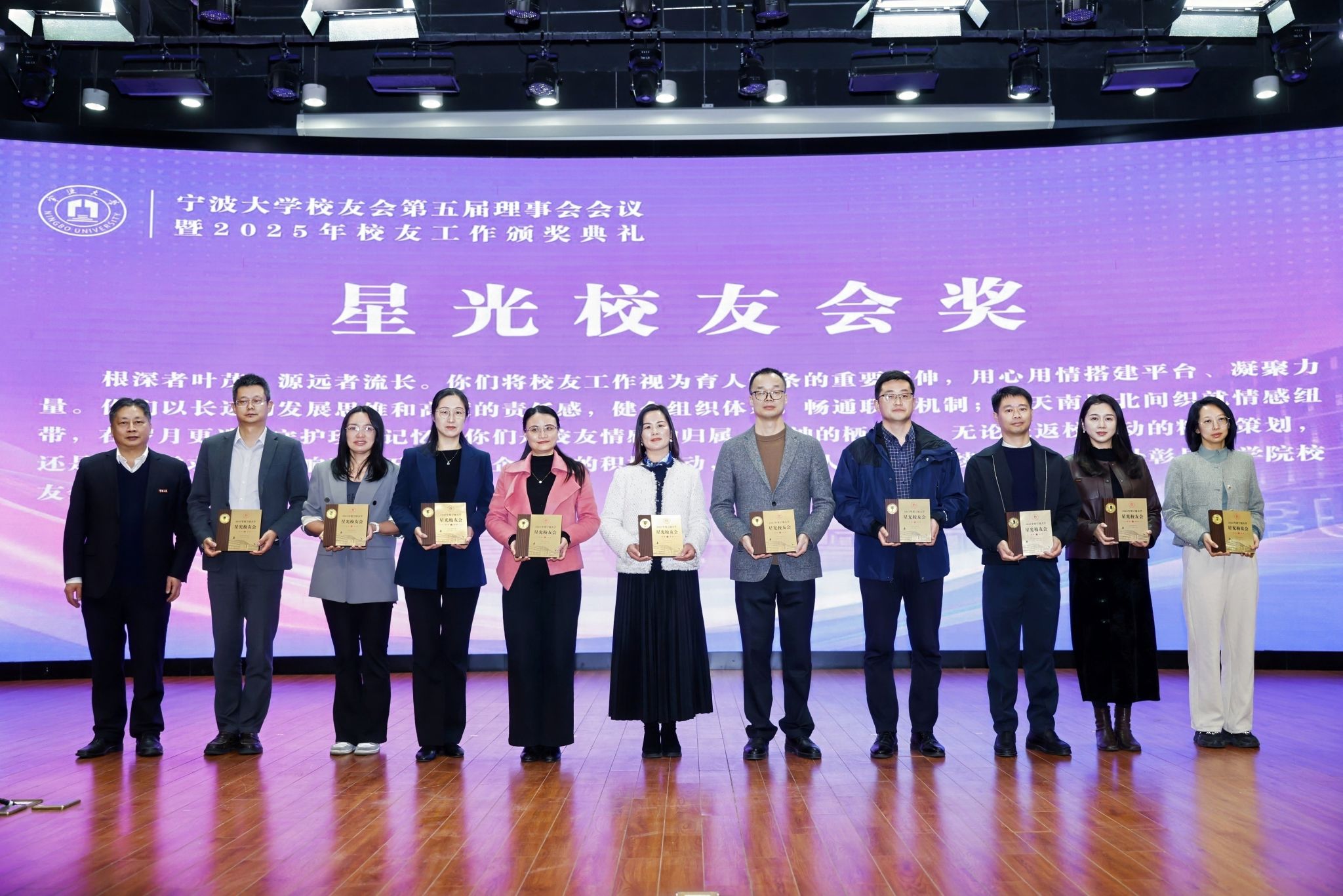 11月29日下午,h图书馆 校友会第五届理事会会议暨2025年校友工作颁奖典礼在真诚图书馆报告厅举行。h图书馆 校友会喜获“星光校友会奖”、中澳MBA校友会喜获“领航校友会奖”,多位校友荣获多项荣誉。学院党委副书记吴敏上台领奖。