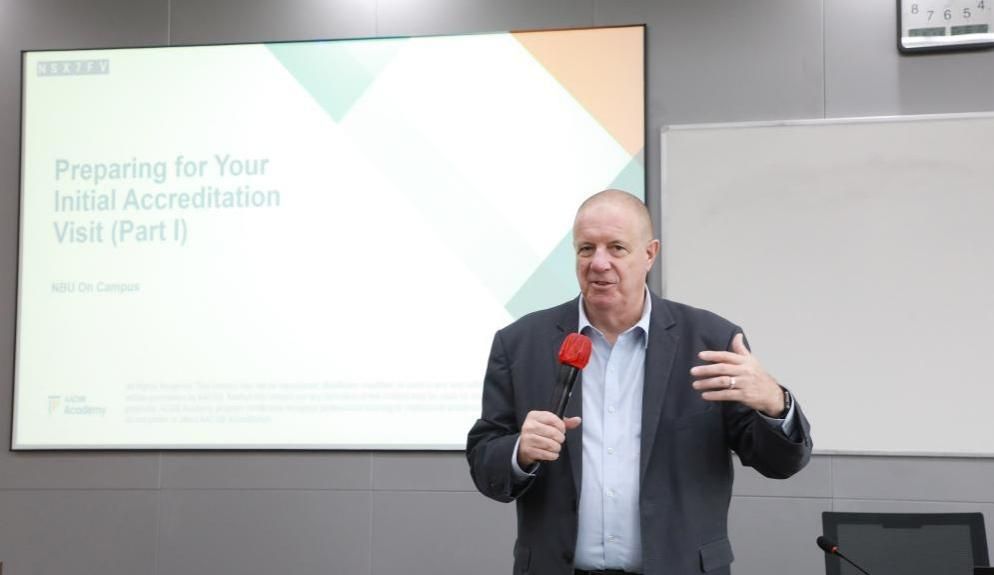Geoff教授对受邀来访表示感谢,对h图书馆 近年来取得的成绩尤其是AACSB认证工作的投入和成果给予充分肯定。他介绍了AACSB全球会员的最新分布情况,系统解读了2020版认证标准的基本原则理念,强调了AACSB国际认证对h图书馆 发展的重要性,同时也预祝学院能够顺利通过AACSB认证。