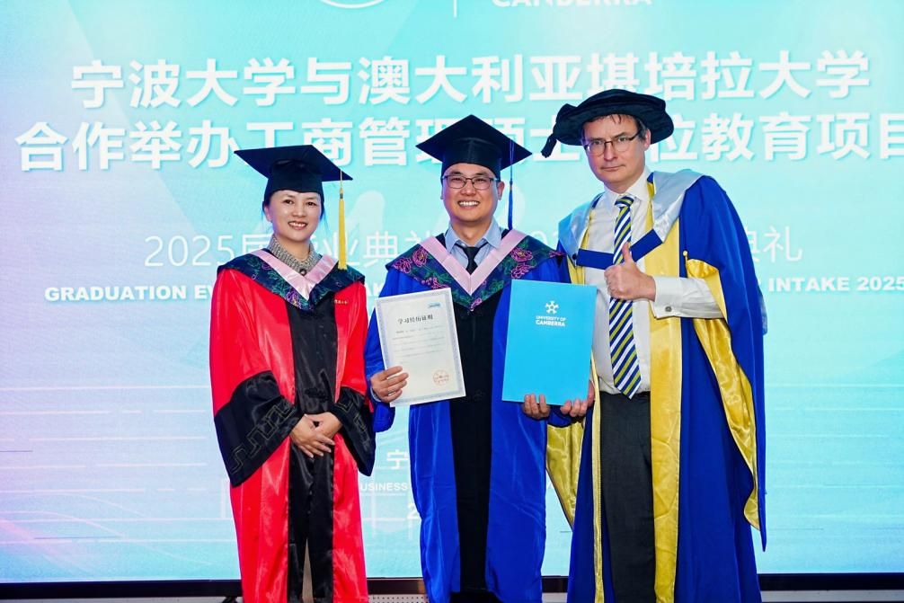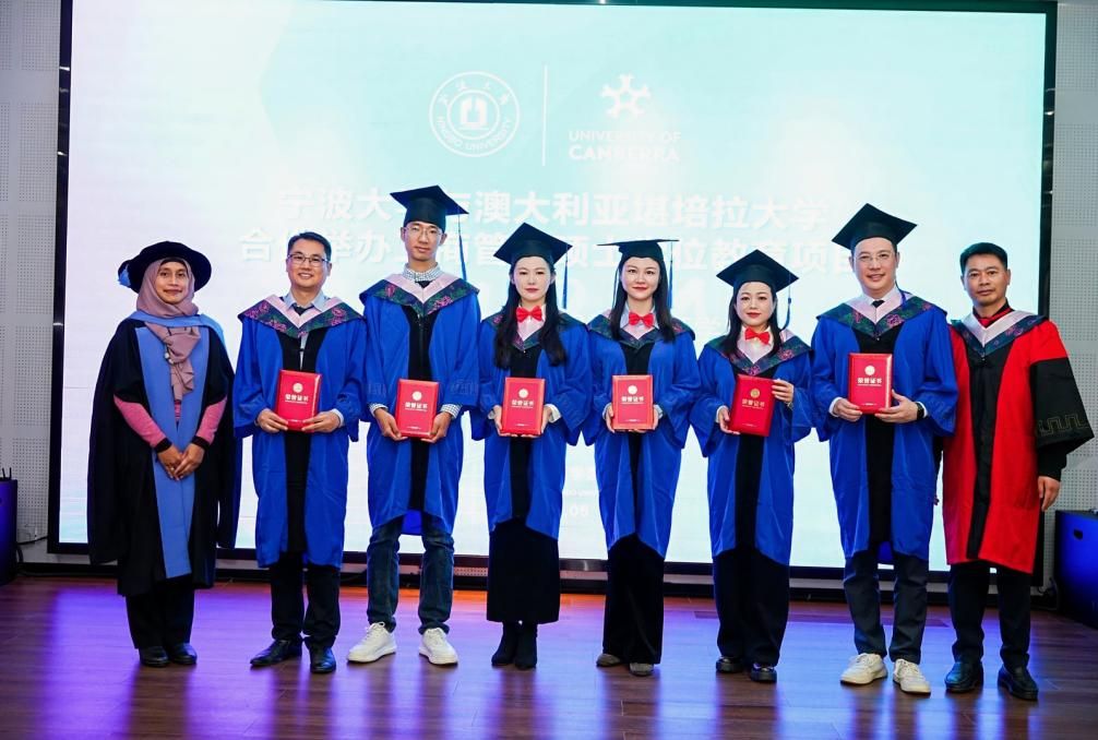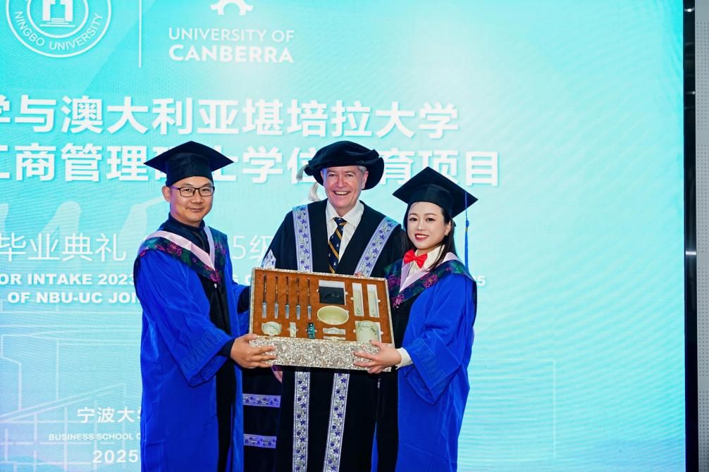 随后由院党委副书记吴敏宣读2025届毕业生名单。双方院长共同为毕业生颁发了澳大利亚堪培拉大学的工商管理硕士学位证书和h图书馆 学习经历证明。