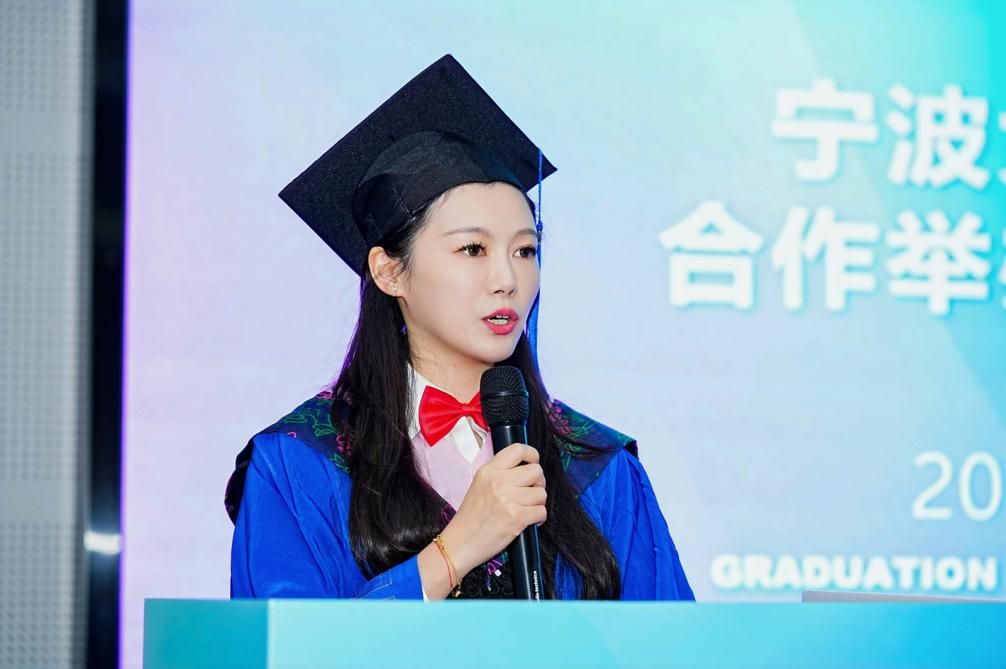 2025级新生代表傅坚明发言。他向圆满完成学业的学长学姐表示热烈祝贺,并分享了自己重返校园的初心:不仅是为了追寻梦想,更是希望拓展生命的广度与可能性。他感谢中澳MBA项目提供了汇聚多元背景的学习平台,让自己在此收获了真挚的同窗情谊。他表示,将与同学们一起始终保持谦逊开放的“空杯心态”,彼此激励、共同成长,努力实现自我超越,最终以所学所能贡献社会、回馈未来。