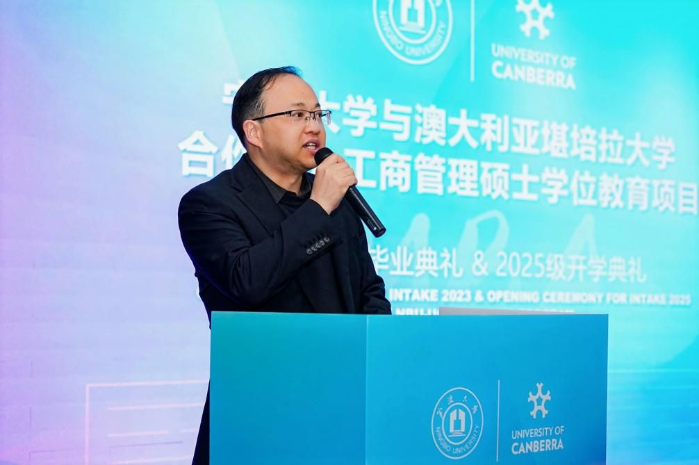h图书馆 中澳MBA校友会会长汪新宇代表校友会向全体2025届毕业生表示热烈祝贺,并对2025级新同学的加入致以诚挚欢迎。他强调中澳MBA项目的独特价值在于构建了全球视野与本土实践深度融合的学习生态,不仅传授系统的管理知识框架,更通过汇聚各行业精英的多元交流平台,实现“以人为镜,明得失,观世界”的成长体验。他介绍了校友会的发展现状与服务理念,着力做好“服务母校、服务校友、服务校友企业”三项核心工作,持续构建“毕业不离家”的温暖生态。