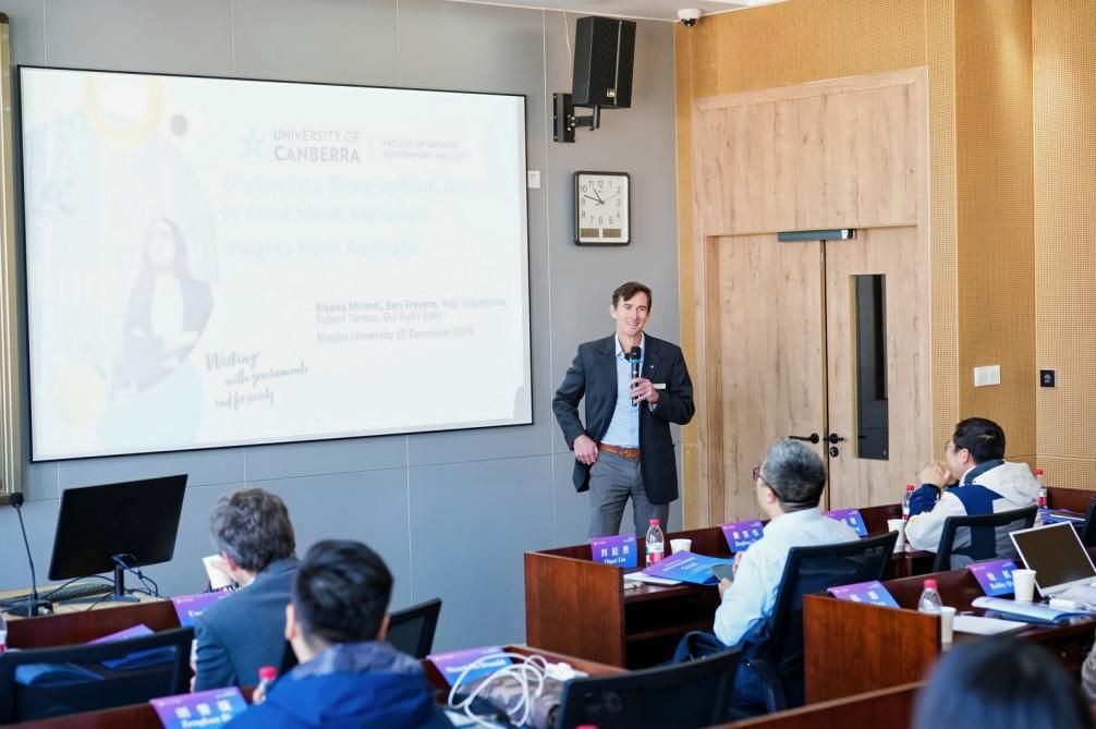 堪培拉大学商政法学院副院长Riyana Miranti教授与Ben Freyens教授解析澳大利亚儿童社会排斥指数(CSE Index)构建与应用,研究从六大维度测度儿童多维劣势,发现排斥存在显著地理差异(偏远地区风险更高),住房压力等为关键影响因素,约16%儿童持续处于高排斥风险;研究指出数据局限并呼吁完善福祉测量框架,同时表达与中国开展比较研究的合作意愿。