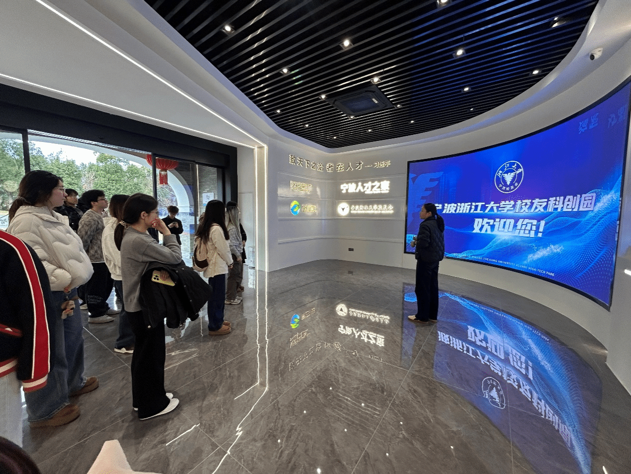 随后,师生团队前往宁波人才之家,重点围绕宁波浙江大学校友科创园的人才管理与组织运营模式展开学习。该科创园区以“有温度的人才家园”为理念,布局9大功能空间,提供13项专项服务,通过创业导师团、创业服务联盟等特色板块,为初创人才提供从项目孵化、资金对接到政策申报的全链条支持。作为集团“人才强企”战略的重要落地载体,这里通过多元化人才激励机制、柔性化组织管理模式,成功引进优质项目66个,汇聚浙大系及海内外高层次人才50余名,成为宁波引才聚才的“强磁场”。负责人向同学们热情推介了园区的创业扶持政策,欢迎青年学子未来在此扎根创业。同学们在了解过程中,重点关注了科创园区的人才招聘、团队建设、跨组织协作等组织行为学相关实践,真切感受到宁波对青年人才的重视与包容,也对现代企业“共生、共融、共享”的组织发展理念有了更深刻的理解。