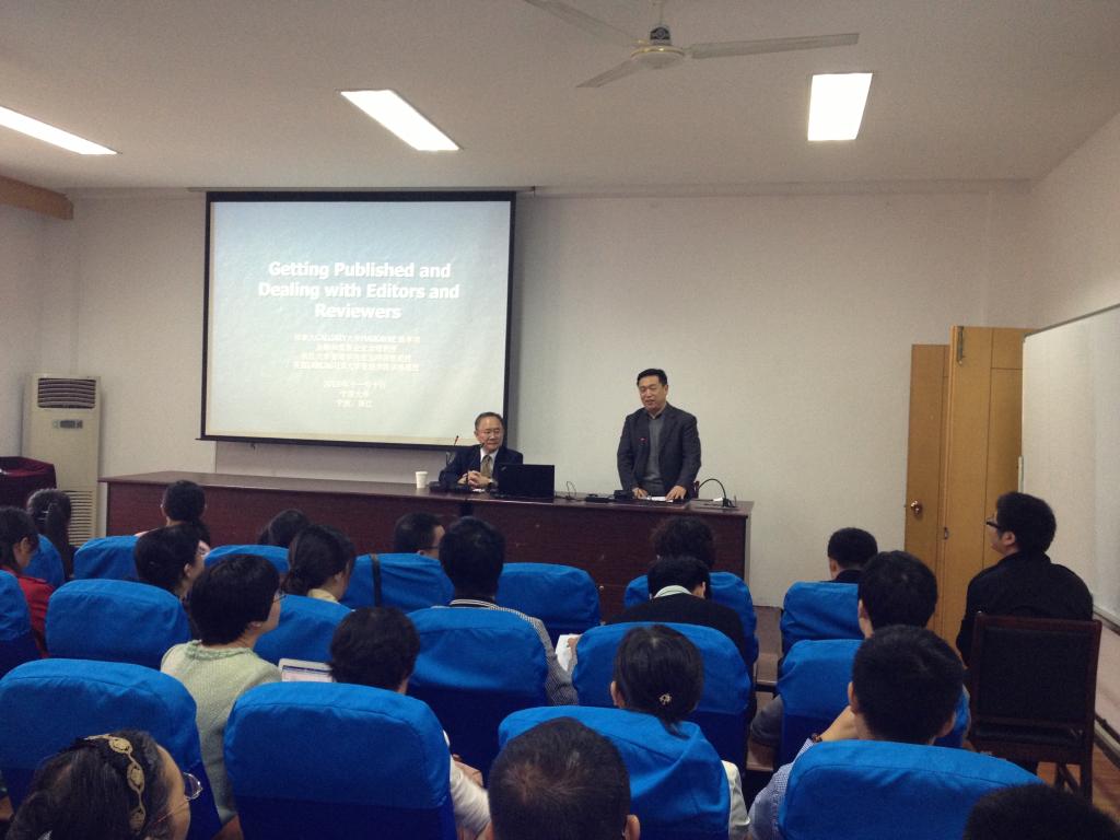 蔡济铭教授主要从国际高水平杂志论文发表的一些建议作为主题切入点,根据自身多年担任国际一流期刊编辑与审稿人的经验向h图书馆 师生详细介绍了编辑与审稿人的审稿思维以及同意或拒绝论文发表的关键依据,主要从研究问题设计、研究规划、研究执行、写作、修改、推销等具体的论文发表过程中需要注意的问题作了详细的分析。蔡教授结合在具体审稿过程中的一些经典案例,讲解了论文逻辑的重要性,强调研究假设、研究方法与研究贡献在高水平论文发表过程中的重要地位。最后在互动环节蔡教授就我国学术科研过程中存在的一些特点与国外进行了对比,为我校师生设计研究与发表论文提出了针对性的建议,并鼓励师生积极撰写高水平英语论文,特别指出要重视研究成果对于科学与社会的积极影响,争取发表能影响人类社会的高水平论文。