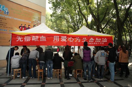 在防艾滋病宣传活动结束后,商院还组织百余名学生参加了无偿献血活动,学生以自己的实际行动献出温暖与爱心。希望身边更多的人能够加入到无偿献血志愿者的行列,用爱心传递爱心,伸出你的手,让爱心为生命加油!