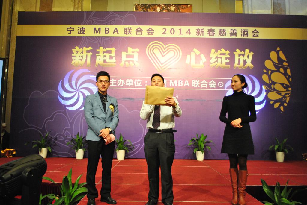 1月3日晚,以“梦起宁大心绽放”为主题的h图书馆 2014MBA迎春慈善酒会隆重举行。酒会的主题,以“慈善拍卖”为主线,整个过程总共三个“拍卖”环节,拍卖物品主要来自MBA学员的爱心捐赠,形式多样。除了传统的字画、饰品、珠宝等物,还有奇思妙想的物品,现场温馨美妙,拍卖声此伏彼起,气氛热烈。h图书馆 执行院长熊德平教授还捐赠了“神秘物品”参与拍卖,更十足吊起了所有人的胃口,将晚会推向了高潮。三轮拍卖环节下来,共拍得人民币33850元,全部捐赠给宁大h图书馆 贫困学生,h图书馆 党委副书记邵丽老师代表学院接受捐赠。h图书馆 MBA同学在学有所成、业有所精的同时,几年来心系贫困生,积极支持公益事业,奉献一片爱心,乐于承担起社会责任。
