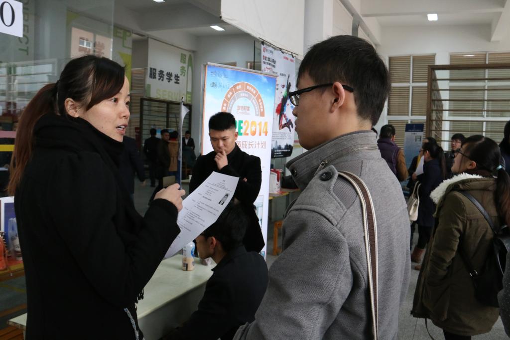 中午13时左右,受邀校友企业和前来应聘的同学便开始陆续入场。此次应邀到场的企业,大多数为宁波大市内的校友企业,也有部分来自上海、金华等地,企业主要分布在进出口、投资、证券、期货、保险、物流等行业。这些企业多与h图书馆 有着长期友好合作关系,其中有多家企业为学院实习基地,一直以来对商院毕业生青睐有加。招聘会现场,校友企业跟应聘的同学们一对一的面谈交流,部分企业前排起了长队等候。