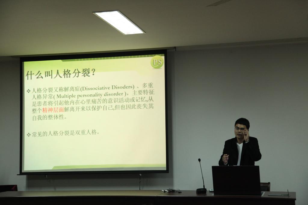 该电影讲述了一名患有11重人格分裂的连环杀人凶手在心理医生的帮助下努力逐个消灭非原型人格,以实现人格整合的故事。同学们被电影跌宕的剧情、巧妙的构思所吸引,直呼精彩,但同时也对影片中诸多与心理学相关的情节产生疑惑。影片结束后,陈老师针对同学们的疑惑,详细地介绍了电影的剧情,剖析了主角的11个人格,同时从心理学专业的角度,重点讲解了人格分裂的定义、产生原因、临床表现及治疗方法。最后陈老师还与同学们探讨了心理学相关话题,使同学们对心理学有了更全面的认识。