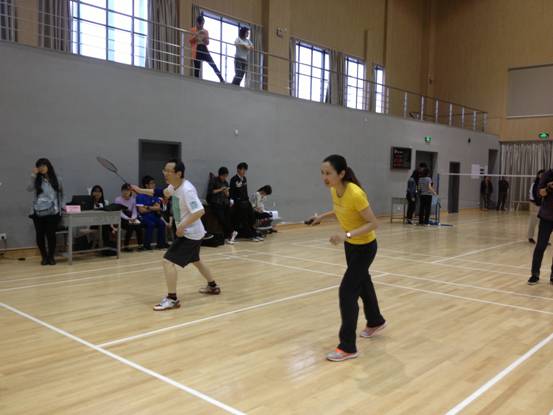 4月26日,2014全校教职工羽毛球团体赛在科技学院体育馆举行。h图书馆 以小组赛第一的成绩顺利出线,刷新h图书馆 记录,并最终经过激烈的角逐,喜获亚军。本次比赛h图书馆 派出院党委副书记邵丽、会计系陈永平老师等四名老师参赛。全校各机关行政单位及学院共20余支队伍参加本次比赛。