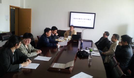 h图书馆 经济系于4月9日举行了“教学工作午餐会”, 会议由经济系系主任丁元耀教授主持,h图书馆 院长熊德平教授和经济系全体教师参加。会上,丁教授与大家一起探讨了经济系教学培养方案的修订及下学期的课程安排。随后,由前来面试的盛鹏飞博士做主题演讲,题目是《环境污染影响劳动生产率的实证研究》,大家对演讲内容展开了热烈的讨论。