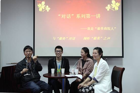 2014年4月25日下午,h图书馆 “对话”系列第一讲我是“最美商院人”在h图书馆 414隆重举行。h图书馆 院长熊德平、党委书记袁虹、副书记邵丽等领导出席了此次活动。
