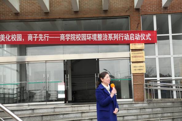 为积极响应学校“治臭河、清垃圾、复绿地”的校园环境专项整治工作,严格落实《h图书馆 校园环境整治工作实施方案》,h图书馆 党委制定了全院开展以“校园环境整治”为主题的系列行动方案。3月12日中午,h图书馆 “美化校园,商子先行”系列活动的启动仪式在商院11号楼大踏步举行。院党委书记袁虹老师、副书记邵丽老师、学工办全体辅导员及院四大学生组织的主要学生干部、各学生党支部和团支部的党员义工和青年志愿者代表60余人出席了本次仪式。