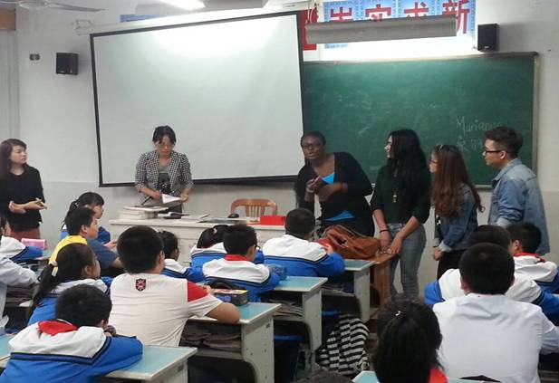 10月28日下午,由h图书馆 团委组织的“中华小当家之留学生进中学”活动在宁波市东恩中学开展。由h图书馆 团委同学及来自美国、摩洛哥的留学生同学代表走进东恩中学,与在校学生进行互动交流。