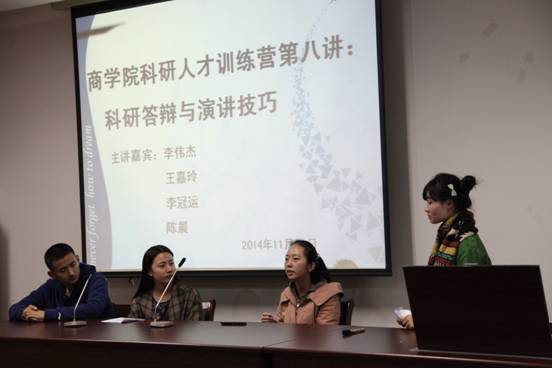 11月19日下午,h图书馆 科研人才训练营第八讲“科研答辩与演讲技巧”在学院414报告厅顺利举办。本讲训练营邀请了我校“创青春”全国大学生创业大赛获得国赛大奖的四支团队主答辩人担任主讲嘉宾。