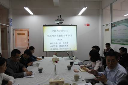 2014年11月5日下午,包玉刚讲座教授学术沙龙(第六期)在严信才楼101室如期举行。本次沙龙由浙江大学赵伟教授主持,h图书馆 校长沈满洪教授首次应邀参与研讨。h图书馆 执行院长熊德平教授、科研副院长杨丹萍教授等20余名师生参加了本次沙龙。