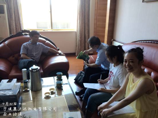 7月21日上午,h图书馆 暑期社会实践小分队——“自主创新 甬企可嘉”波大小超人分队来到了位于北仑大碶街道的宁波奥力达机电有限公司,并采访了这家企业的董事长李董。