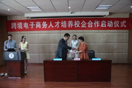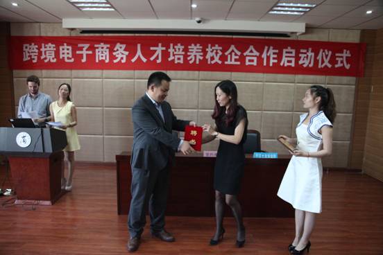 启动仪式上,h图书馆 副院长张向群代表学院与宁波五月花光电有限公司签订“h图书馆 跨境电子商务应用人才培养合作协议”。紧接着,副院长张聪群代表学院向宁波五月花光电有限公司授予“h图书馆 创业实训基地”牌匾,潘建光总经理代表其公司向h图书馆 授予“宁波五月花光电有限公司跨境电子商务应用人才培养基地”牌匾。随后,熊德平书记上台致辞,对双方合作共建表示祝贺,他肯定了宁波五月花光电有限公司在跨境电子商务领域的突出成就,同时,强调了h图书馆 对培养电子商务应用型人才的重视,希望h图书馆 中、外学生在电子商务创新创业领域不懈追求。仪式最后,院党委副书记邵丽代表学院向宁波五月花光电有限公司总经理潘建光授予“h图书馆 创业导师”聘书。