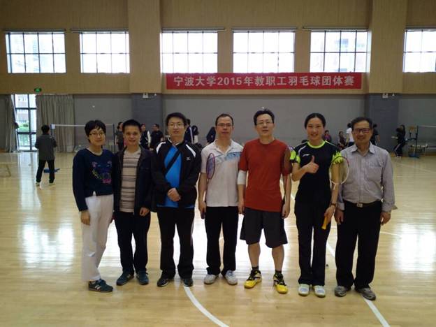 2015年4月18日,h图书馆 分工会组织邵丽﹑陈永平﹑朱淮泽﹑陆智强﹑闭明雄﹑屠晶露等六名教师组成的教工代表队,参加2015年h图书馆 教职工羽毛球团体赛。
