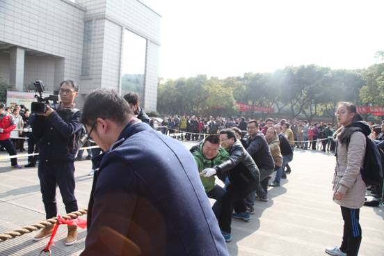 2014年12月29日中午,h图书馆 教职工新年拔河比赛在安中大楼门口广场举行。学院分工会主席李浩明老师组织邵丽﹑伍湘陵﹑陈彬﹑毛孟凯﹑朱福建﹑邓启明﹑郑建华﹑武建章﹑李永涛﹑冷军﹑郑凌燕﹑傅梅﹑王凡等13位老师参加,因实力悬殊,最终不敌教师教育学院队。