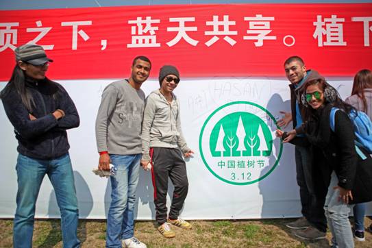 3月12日中午,h图书馆 30名中、外学生代表在宁大大草坪参加了学校“植树节”活动。同学们戴上手套,拿着铲子,一同将h图书馆 三棵银杏树苗种下,并一同签名留念、合影。活动现场气氛热烈。