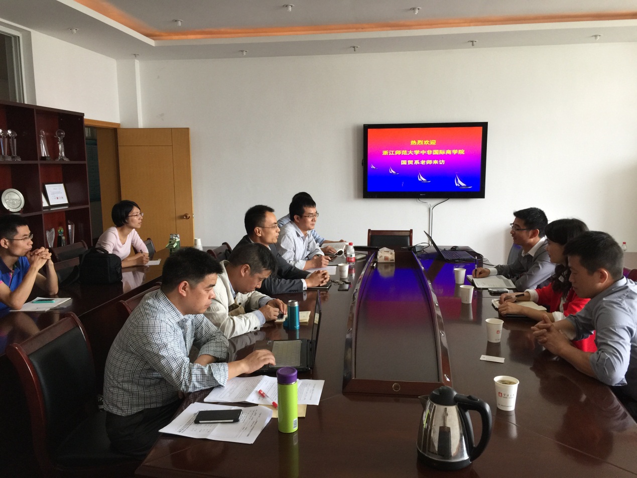 座谈会上,盛沛锋副院长首先对浙江师范大学中非国际h图书馆 调研组的到来表示欢迎,介绍了h图书馆 全英文教学基本情况,总结和分享了h图书馆 国际化教育取得进展与主要经验。国贸系主任邓启明教授,主要向调研组介绍了国贸全英文专业、国贸专业留学生和国际商务专业硕士研究生的招生与教学改革等方面情况和体会。宾主双方还就学生毕业论文和教师科研等方面问题,进行初步交流,达成了保持联系、加强教学交流与科研合作的意向。