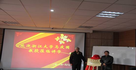 学术报告前,“h图书馆 管理决策与脑科学研究中心”(以下简称研究中心)举行了揭牌仪式。杨丹萍教授主持了揭牌仪式。揭牌仪式上,研究中心主任范柏乃教授邀请马庆国教授共同为研究中心揭牌,并宣布研究中心正式成立。马庆国教授结合浙江大学神经管理学实验室第一个成果的获得情况,和实验室目前研究状况与所取得的成就,展望了研究中心的发展前景,并对研究中心寄予厚望。