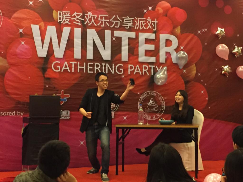 晚会的组织方,h图书馆 留学生部的老师和干部们也登台合唱了一首《Just the Way You Are》。晚会现场还有不少游戏互动和内容丰厚的抽奖,再加上外场经验丰富的两位魔音DJ全场把控,将欢乐与惊喜的氛围由开场延续到了最后。