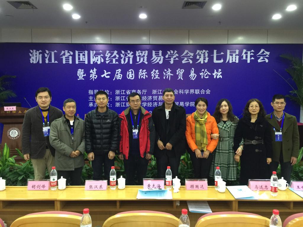 12月5-6日,浙江省国际经济贸易学会第七届年会暨第七届国际经济贸易论坛,在浙江财经大学学术中心举行。除了简短开幕和闭幕式,会议设有主题报告和4个分论坛,来自全省高等院校及国际商务相关研究与管理部门的近100名代表参加研讨。h图书馆 国际经济与贸易系、经济学系、产业经济与区域发展研究所的10 余名教师和研究生,参加了本次盛会,并交流和汇报各自研究成果;国贸系主任邓启明教授还应邀主持了 “一带一路与国际投资”分论坛,并向大会报告分论坛研讨成果。