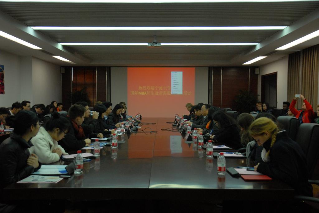 12月5日上午,h图书馆 MBA教育中心组织来自6个国家的2015级MBA留学生和德国交换生走进宁波新海电气股份有限公司参观学习。正在慈溪市考察工作的宁波市副市长张明华得知这一信息后,专程赶往企业看望h图书馆 MBA留学生并参与座谈。张明华副市长在会谈交流中充分肯定h图书馆 对于宁波城市发展做出的贡献,建议创新校企互动模式,鼓励在国际学生的创新创业基地建设上做创新性的尝试,让宁波企业家精神影响宁波、影响中国、影响世界。