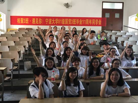 5月1日,h图书馆 01级国贸3班校友们重回母校,举办毕业11周年同学会。国贸系副教授兼班主任叶劲松老师参加本次同学会。