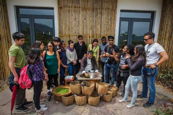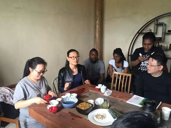 午餐后,五龙潭茶业的杨总特别换上了炒茶的传统服饰,坐在一口大锅前,亲自为留学生们演示传统手工炒制绿茶的过程,并对整个炒茶的过程进行了细致的讲解。留学生们个个听得津津有味,还不时向杨总好奇地发问。手工炒茶结束后,农林局的茶叶博士吴颖向留学生们现场演示了冲泡绿茶、乌龙茶、白茶、红茶的过程,并向同学们解释了这几种茶之间的区别。当听到自己在茶园里采摘的茶树已经有42年树龄时,同学们纷纷流露出惊讶的神色。今年市场价卖至七八百元的新茶清香扑鼻、甘洌鲜爽,博得了留学生同学的一致好评。